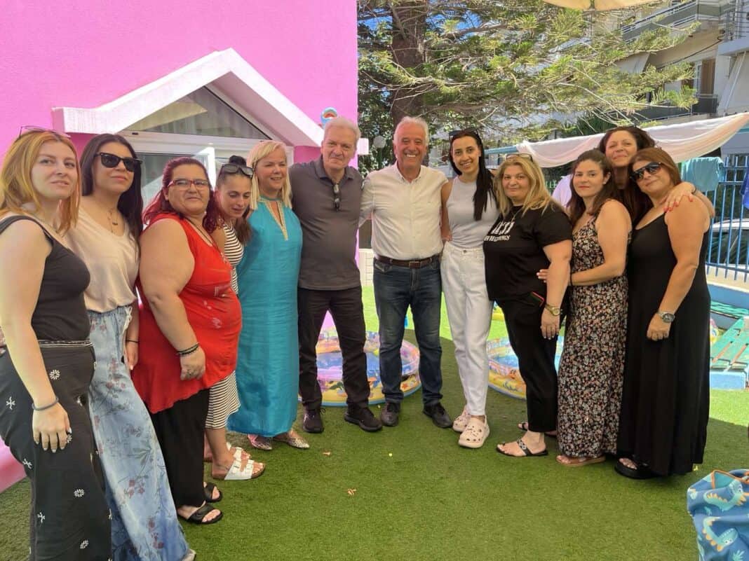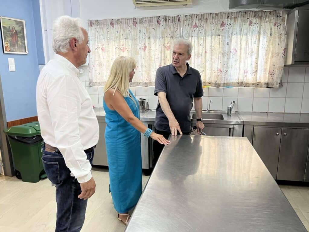 Στο πλαίσιο της επίσκεψης, ο Αλέξης Καλοκαιρινός μαζί με τον Αντώνη Περισυνάκη είδαν από κοντά τους χώρους για την φύλαξη, την επιμέλεια, την φροντίδα και την διατροφή βρεφών και νηπίων του Β’ Κέντρου Προσχολικής Αγωγής που βρίσκεται στην περιοχή της Όασης.