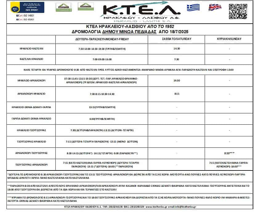 ΔΡΟΜΟΛΟΓΙΑ ΔΗΜΟΥ ΜΙΝΩΑ ΠΕΔΙΑΔΑΣ ΑΠO 18/7/2025