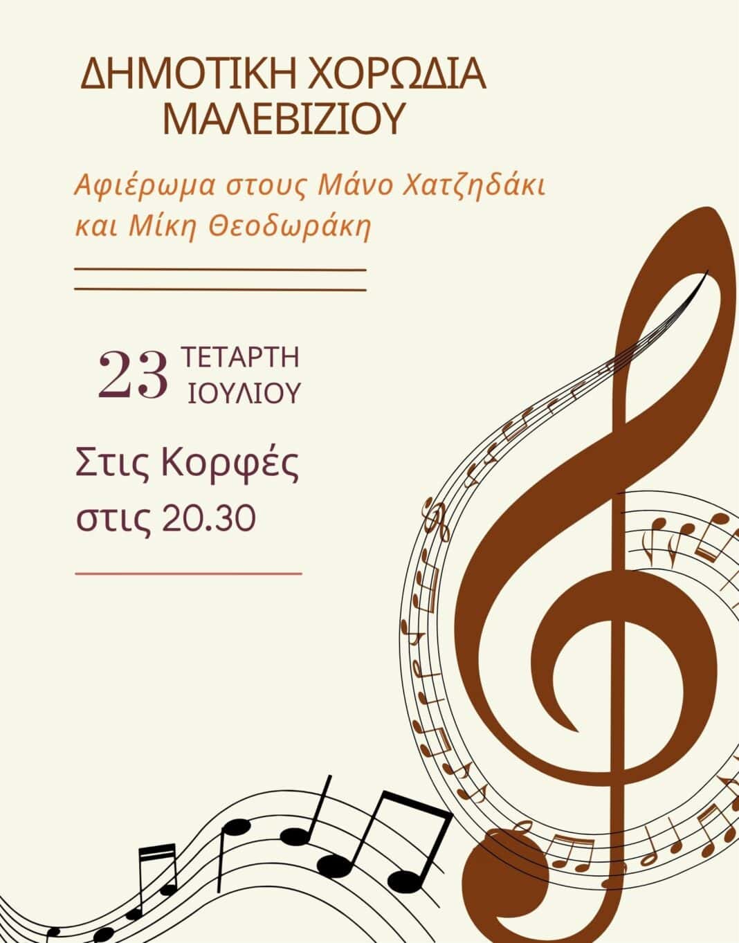 Ο Δήμος Μαλεβιζίου και η Δημοτική Χορωδία έχουν τη χαρά να παρουσιάσουν μια σειρά μουσικών παραστάσεων σε χωριά του Δήμου, στο πλαίσιο του φετινού καλοκαιρινού προγράμματος εκδηλώσεων.
