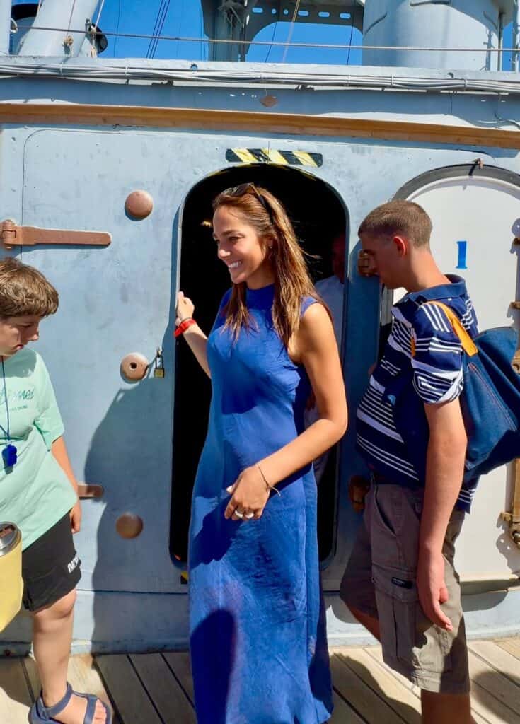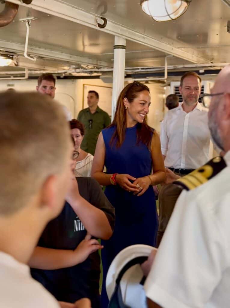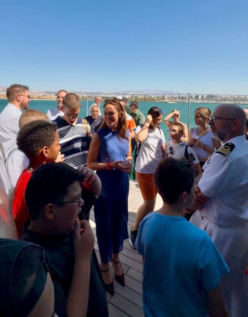Η Υπουργός κατά την περιήγηση στο ιστορικό θωρηκτό, συνομίλησε με το προσωπικό των Μονάδων και συμμετείχε ενεργά στη δράση, υπογραμμίζοντας τη σημασία της ίσης πρόσβασης όλων των παιδιών στον πολιτισμό και την εκπαίδευση.