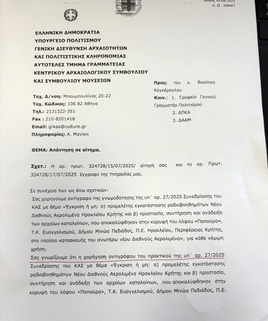 Οι εξελίξεις δείχνουν ότι τα Υπουργεία Πολιτισμού και Υποδομών, προχωρούν χωρίς ντροπή στην καταστροφή του προμινωικού Μνημείου, των περίπου 5.000 ετών.