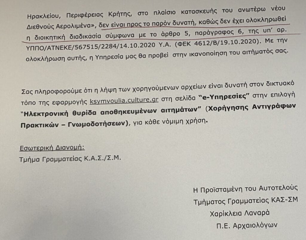 Είναι χαρακτηριστικό ότι σήμερα, 5 Αυγούστου, ζήτησα επίσημα τα πρακτικά του Κεντρικού Αρχαιολογικού Συνεδρίου που γνωμοδότησε θετικά για το έγκλημα και η απάντηση είναι ότι δεν έχει ακόμα ολοκληρωθεί η διοικητική διαδικασία για την καταγραφή τους.