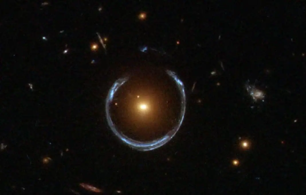 Οι επιστήμονες εντόπισαν το κοσμικό «τέρας» μέσω ενός φαινομένου που ονομάζεται δαχτυλίδι του Αϊνστάιν — ένα είδος βαρυτικού φακού που δημιουργείται όταν ένα υπερμεγέθες αντικείμενο, όπως μια μαύρη τρύπα ή ένα σμήνος γαλαξιών, καμπυλώνει τον χωροχρόνο, μεγεθύνοντας το φως από πιο μακρινά αντικείμενα που βρίσκονται πίσω του.