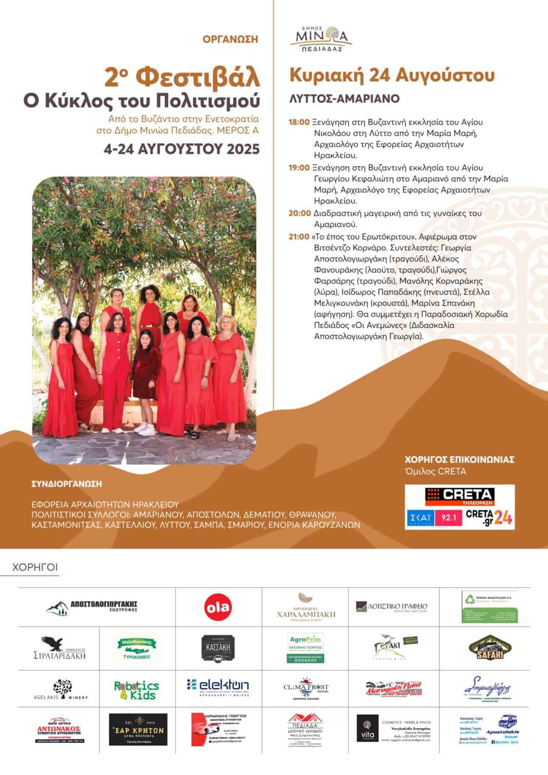 Ο κύκλος του Πολιτισμού θα ολοκληρωθεί την Κυριακή 24 Αυγούστου 2025, με τελευταίο του «σταθμό» τη Λύττο και το Αμαριανό