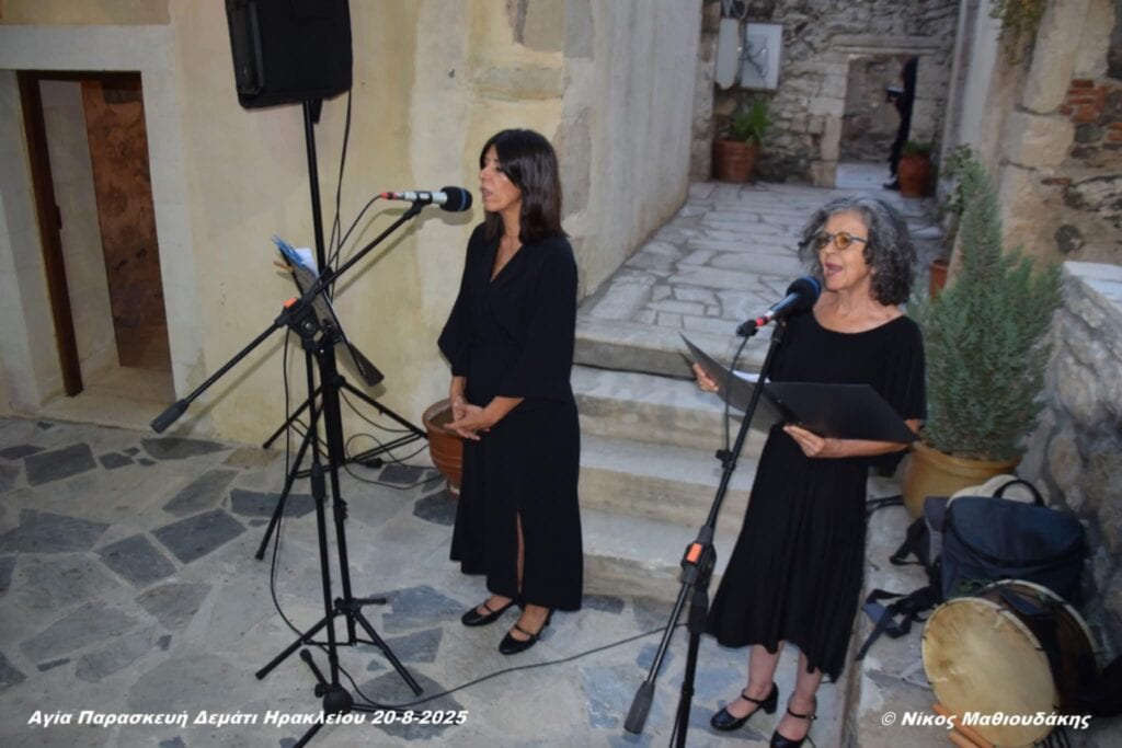 Άλλη μία βραδιά αφιερωμένη στον πολιτισμό, την παράδοση και τη μουσική, είχαν την ευκαιρία να απολαύσουν, μέσα σε μια ζεστή και φιλόξενη ατμόσφαιρα, όσοι βρέθηκαν την Τετάρτη 20 Αυγούστου 2025 στο Δεμάτι, στις εκδηλώσεις που διοργάνωσε ο Δήμος Μινώα Πεδιάδας, σε συνεργασία με την Εφορεία Αρχαιοτήτων Ηρακλείου και τον Πολιτιστικό Σύλλογο Δεματίου «Η Αγία Παρασκευή».