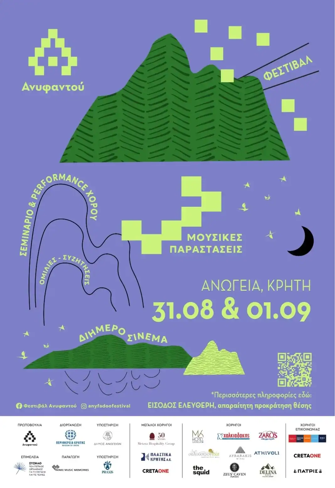 Το 1ο Φεστιβάλ Ανυφαντού πραγματοποιείται φέτος στα Ανώγεια, με την υποστήριξη της Περιφέρειας Κρήτης, στο πλαίσιο της Παράλληλης Δράσης «Οι γυναίκες συναντούν τα 5ο Φεστιβάλ Κρήτης». Το 1ο Φεστιβάλ Ανυφαντού, θα πραγματοποιηθεί από 31 Αυγούστου έως 1 Σεπτεμβρίου 2025, με ελεύθερη είσοδο για το κοινό. Πρόκειται για ένα διήμερο, όπου η παράδοση συναντά τη σύγχρονη καλλιτεχνική δημιουργία, φωτίζοντας τον ρόλο της γυναίκας-δημιουργού και θέτοντας στο επίκεντρο τη δύναμη της ελεύθερης έκφρασης. Το πρόγραμμα υφαίνεται με τολμηρές μουσικές συμπράξεις, με σινεμά από νέες και καταξιωμένες φωνές του διεθνούς κινηματογράφου, πρωτότυπες χορευτικές παραστάσεις και ανοιχτά σεμινάρια χορού.