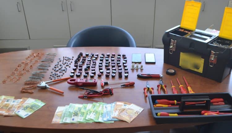 Στην κατοχή τους κατασχέθηκαν εργαλεία και εξοπλισμός του ΔΕΔΔΗΕ, σφραγίδες μετρητών, χαλκοσωλήνες, εργαλειοθήκη με ηλεκτρολογικά εξαρτήματα και άλλα.