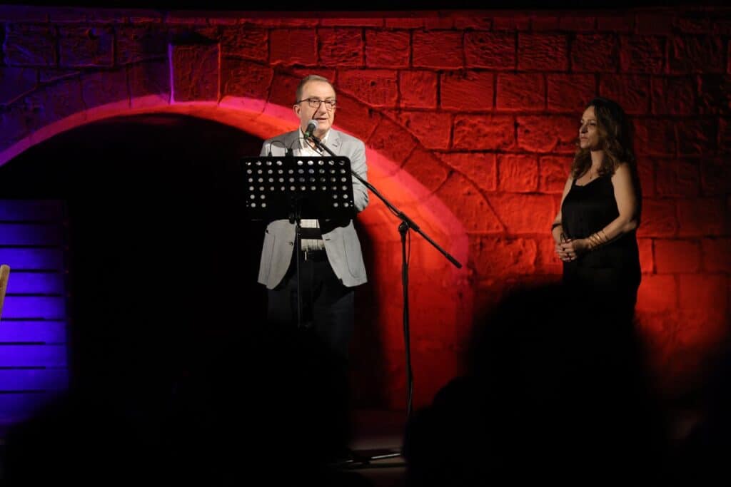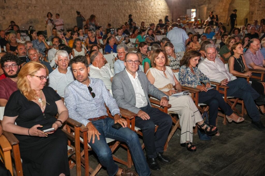 Στον χαιρετισμό του ο Πρόεδρος του Περιφερειακού Συμβουλίου Κρήτης και Επικεφαλής του Φεστιβάλ Κρήτης Βαγγέλης Ζάχαρης, παρόντων του Δημάρχου Αλέξη Καλοκαιρινού, της Αντιδημάρχου Πολιτισμού Ρένας Παπαδάκη, και πλήθους κόσμου, καλωσόρισε όλους για την παρουσία τους και ευχαρίστησε για την επιτυχημένη διοργάνωση όλους τους συντελεστές. Παράλληλα ο κ. Ζάχαρης αναφερόμενος στη διοργάνωση, πρόσθεσε :