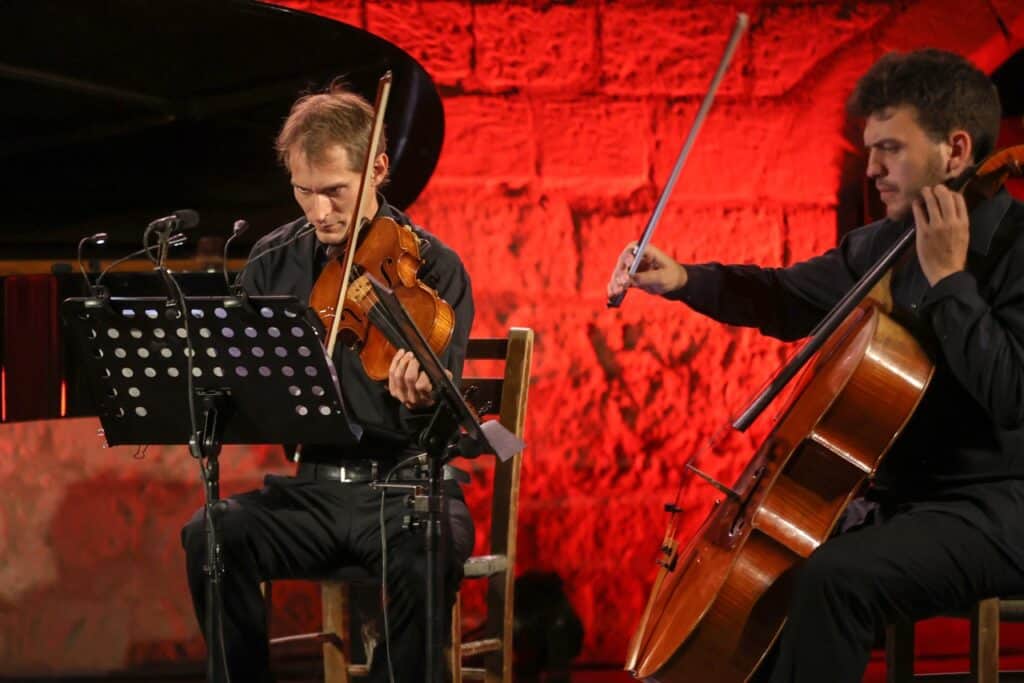 Το πρόγραμμα ξεκίνησε με το Κουιντέτο με πιάνο, έργο 18, του Μιέτσιλαβ Βάινμπεργκ (1919–1996), με ερμηνευτές τους Josef Špaček και Roman Simović στο βιολί, τον David Bogorad στη βιόλα, τον Άγγελο Λιακάκη στο βιολοντσέλο και τον Alexei Volodin στο πιάνο. Στη συνέχεια παρουσιάστηκε το Κουαρτέτο Εγχόρδων αρ. 8 σε ντο ελάσσονα, έργο 110, του Ντμίτρι Σοστακόβιτς (1906–1975), με ερμηνευτές τους Roman Simović και Josef Špaček στο βιολί, τον David Bogorad στη βιόλα και τον Alexander Wollheim στο βιολοντσέλο.