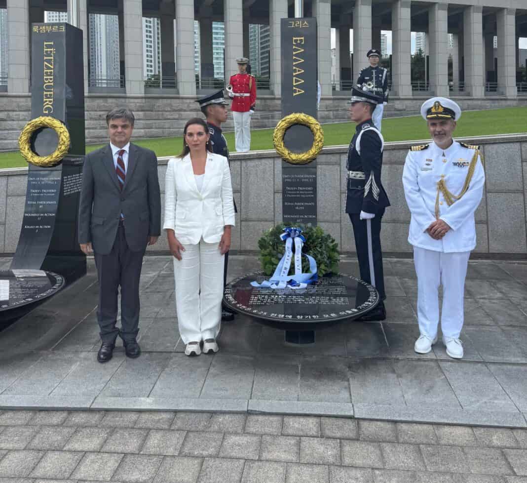 Στη συνέχεια η κα Κεφαλογιάννη μετέβη στο μνημείο πεσόντων Ελλήνων στο Πολεμικό Μουσείο της Κορέας (Korean War Memorial) όπου κατέθεσε στεφάνι εκ μέρους της Ελληνικής Κυβέρνησης. Ακολούθως, ξεναγήθηκε στους χώρους του Μουσείου, όπου υπάρχει ξεχωριστή προθήκη αφιερωμένη στη συμμετοχή του ελληνικού εκστρατευτικού σώματος στον πόλεμο της Κορέας.