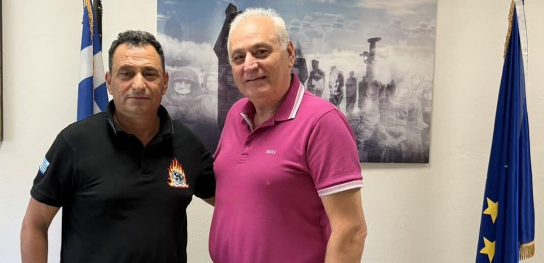 Συνάντηση με τον Υποστράτηγο κ. Κωνσταντίνο Ψαρρό, Συντονιστή Πυροσβεστικών Επιχειρήσεων Βορείου, Νοτίου Αιγαίου και Κρήτης, είχε ο Δήμαρχος Βιάννου κ. Παύλος Μπαριτάκης.