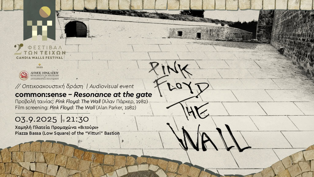 Στην χαμηλή πλατεία του προμαχώνα Βιτούρι στις 21:30 θα προβληθεί η ταινία Pink Floyd: The Wall (1982) σε σκηνοθεσία Άλαν Πάρκερ. Η προβολή εντάσσεται στο πλαίσιο της οπτικοακουστικής δράσης Resonance at the gate της ομάδας common:sense η οποία παρουσιάζει ένα 5ήμερο ταξίδι γεμάτο εικόνες, ήχους και συναισθήματα, στη διάρκεια του οποίου η χαμηλή πλατεία του προμαχώνα Βιτούρι μεταμορφώνεται σε σκηνή.