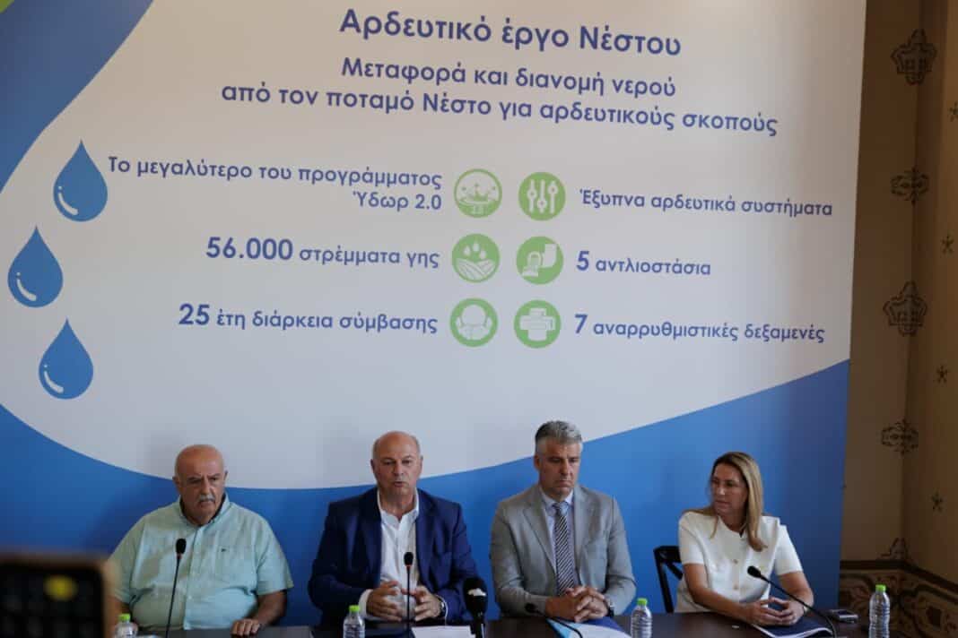 Η Γενική Γραμματέας Ενωσιακών Πόρων και Υποδομών, Αργυρώ Ζέρβα επισήμανε: «Το έργο του Νέστου είναι το μεγαλύτερο αρδευτικό έργο στην Ανατολική Μακεδονία και Θράκη και ένα από τα πρώτα έργα που υλοποιούνται στη χώρα μας με τη μέθοδο της Σύμπραξης Δημόσιου Ιδιωτικού Τομέα.