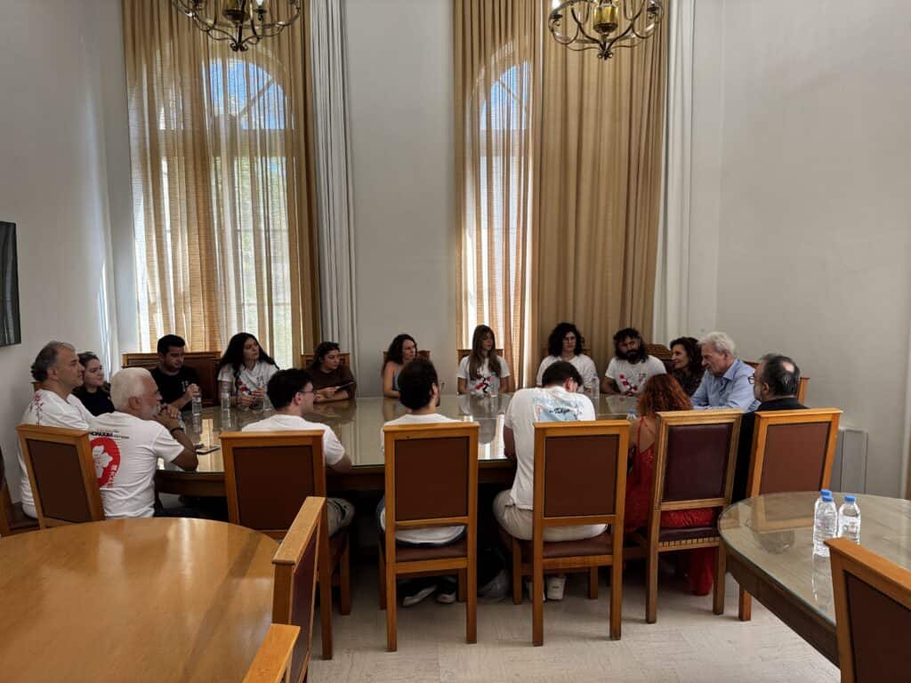 Το Φωνητικό Σύνολο ΦΩΝΩΔΙΑ και τον καλλιτεχνικό Διευθυντή του Ιωάννη Ιδομενέως υποδέχθηκε ο Δήμαρχος Ηρακλείου Αλέξης Καλοκαιρινός και η Αντιδήμαρχος Πολιτισμού Ρένα Παπαδάκη-Σκαλίδη στη Λότζια.