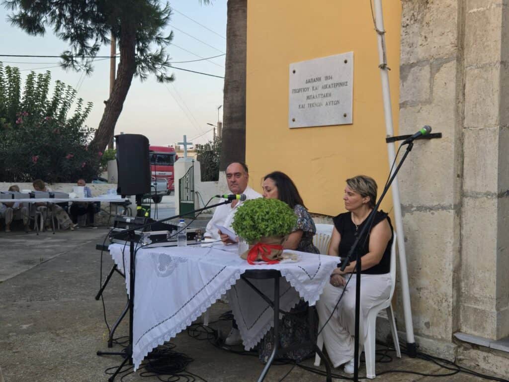 Στην εκδήλωση, παρευρέθηκαν εκ μέρους του Δήμου ο Πρόεδρος του Δημοτικού Συμβουλίου Γιώργος Καλογεράκης, ο Γενικός Γραμματέας Νίκος Μπελενιώτης και ο Δημοτικός Σύμβουλος Γιάννης Συμιανάκης.