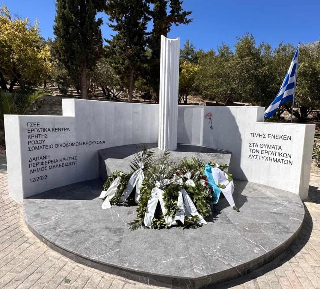 Ο Δήμος Μαλεβιζίου σε συνεργασία με τα Εργατικά Κέντρα Κρήτης και Ρόδου και το Σωματείο Οικοδόμων Κρουσώνα και με την στήριξη της Περιφέρειας Κρήτης, πραγματοποιούν εκδήλωση τιμής και μνήμης για τα θύματα των Εργατικών Δυστυχημάτων.
