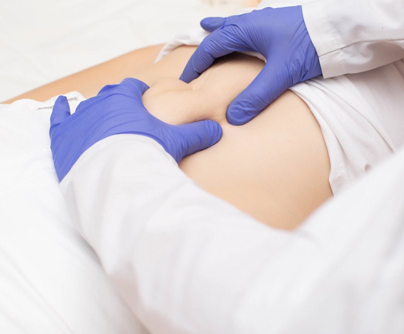 - Ένα πλέγμα χρησιμοποιείται για την ενίσχυση του κοιλιακού τοιχώματος.