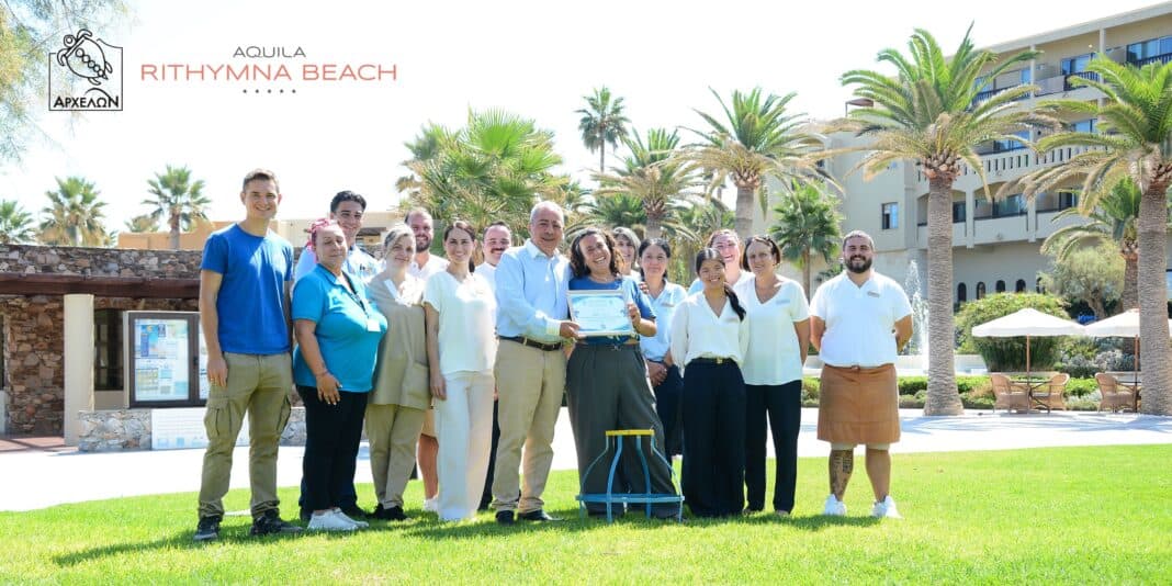 Οι άνθρωποι του ΑΡΧΕΛΩΝ συναντήθηκαν πρόσφατα με το προσωπικό και τη διεύθυνση του ξενοδοχείου για να τους παραδώσουν επίσημα το Πιστοποιητικό Υποστήριξης. «Η καλή σχέση μας με το Aquila Rithymna Beach χρονολογείται από τη δεκαετία του ’90 και έχει ήδη διαδραματίσει ζωτικό ρόλο στην προστασία των φωλιών χελωνών στην περιοχή όλα αυτά τα χρόνια» λέει ο Γιώργος Βράμπας, Υπεύθυνος Προγράμματος Ρεθύμνου του ΑΡΧΕΛΩΝ. Αυτή η προσπάθεια αποδεικνύει ότι η προστασία της θαλάσσιας χελώνας δεν είναι απλώς μια περιβαλλοντική δράση -είναι ένα ζωντανό παράδειγμα του πώς μπορεί να επιτευχθεί ο βιώσιμος τουρισμός.