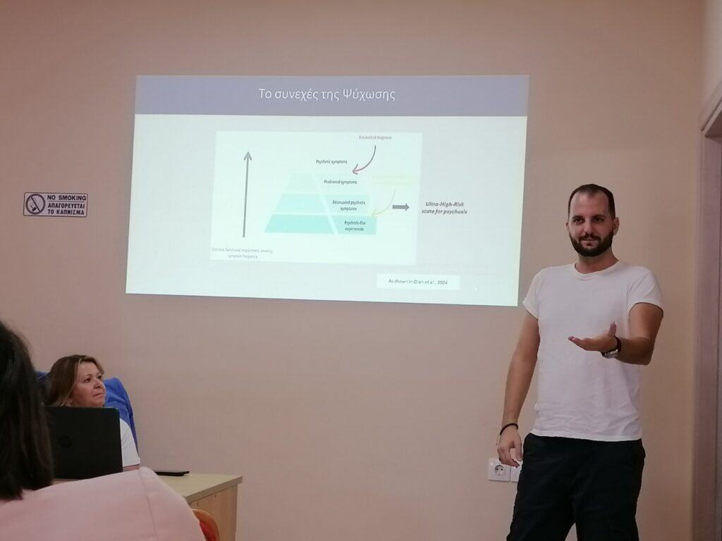 Με επιτυχία, χρήσιμες πληροφορίες και συμπεράσματα ολοκληρώθηκε, τη Δευτέρα 29 Σεπτεμβρίου 2025, η δράση ευαισθητοποίησης και ενημέρωσης από την Μονάδα Έγκαιρης Παρέμβασης στην Ψύχωση (Μ.Ε.Π.) Νομού Ηρακλείου της ΑΜΚΕ «Ξένιος Ζευς». Στο επίκεντρο της δράσης βρέθηκε η ανάδειξη της αξίας της έγκαιρης ανίχνευσης και αντιμετώπισης των πρώιμων συμπτωμάτων ψύχωσης.