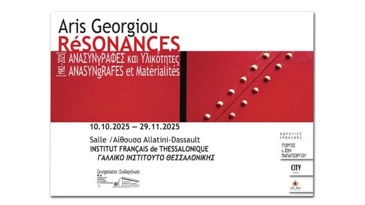 Την έκθεση του Άρι Γεωργίου με τίτλο «Résonances | ΑΝΑΣΥΝγΡΑΦΕΣ και Υλικότητες 1982-2025» φιλοξενεί, από τις 10 Οκτωβρίου έως τις 29 Νοεμβρίου 2025, το Γαλλικό Ινστιτούτο Θεσσαλονίκης.