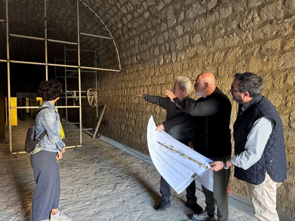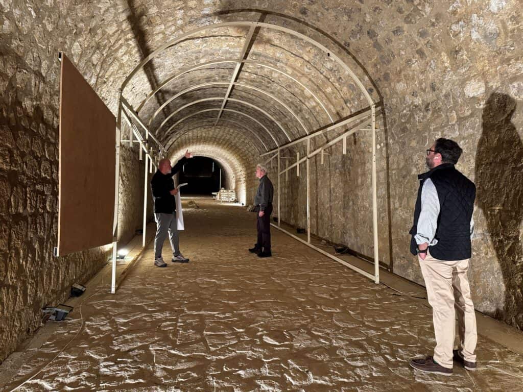 Ειδικότερα, ο Αλέξης Καλοκαιρινός και οι συνεργάτες του είδαν από κοντά τις εργασίες διαμόρφωσης για την Μόνιμη Έκθεσης Ενθυμημάτων Εθνικής Αντίστασης που βρίσκονται σε εξέλιξη στη στοά Μακάσι, μέσω της οποίας ο επισκέπτης θα μπορεί να βρεθεί από την Λ. Πλαστήρα στην τάφρο των Τειχών, στο σημείο μεταξύ της Υπηρεσίας Πρασίνου και της παιδικής χαράς.