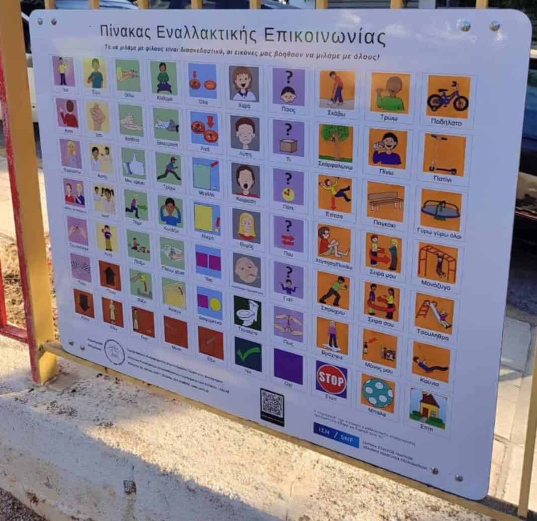 Πίνακες εναλλακτικής επικοινωνίας σε 10 παιδικές χαρές του Δήμου Ηρακλείου τοποθετήθηκαν από την Αντιδημαρχία Εθελοντισμού σε συνεργασία με την Ομάδα Ειδικού Ενδιαφέροντος για τις Αναπτυξιακές Γλωσσικές Διαταραχές του Συλλόγου Επιστημόνων Λογοπαθολόγων Λογοθεραπευτών Ελλάδος (ΣΕΛΛΕ).