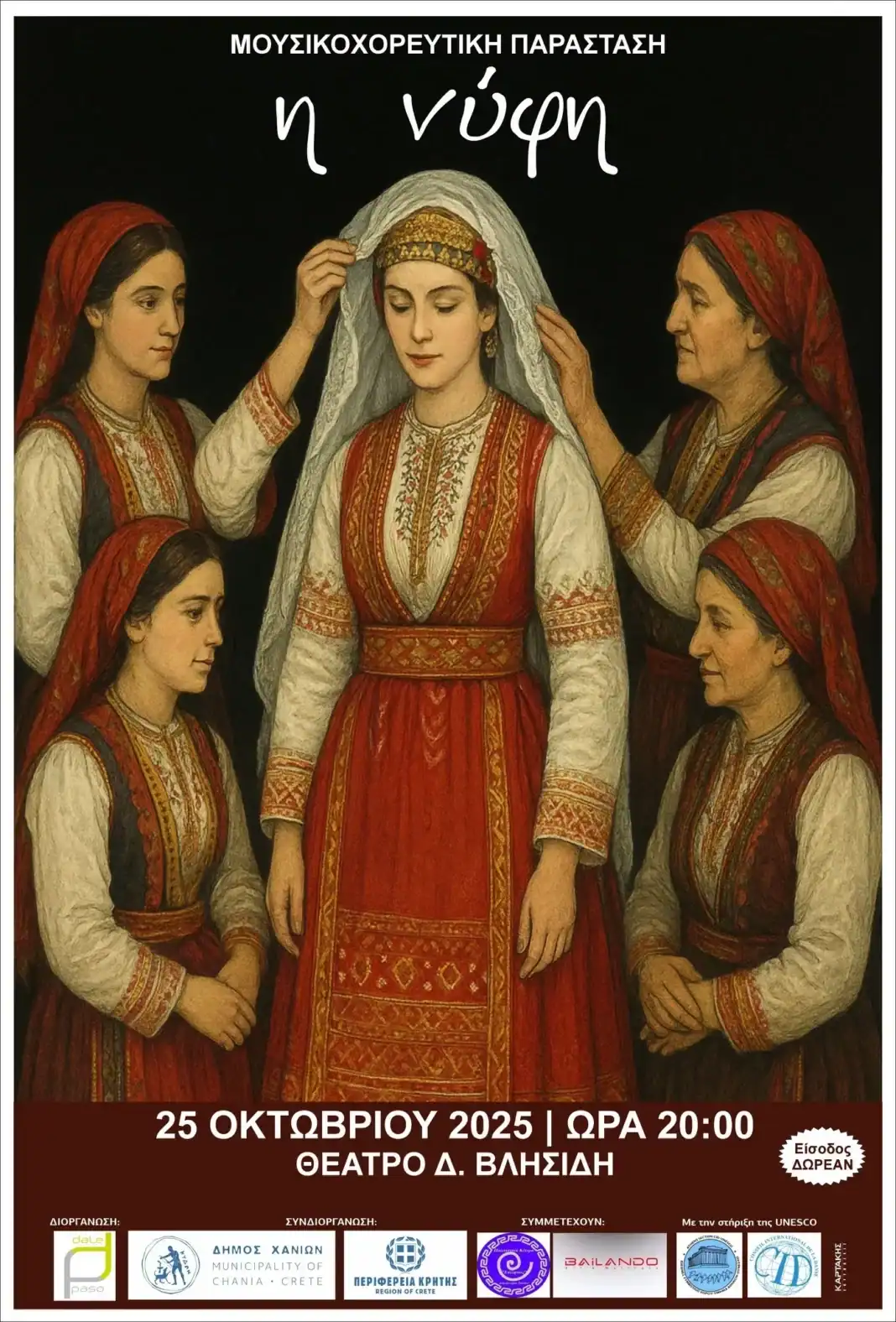 Ο Αθλητικός Χορευτικός Σύλλογος “Δώσε Πάσο” (Dale Paso) σε συνεργασία με το Δήμο Χανίων και την Περιφέρεια Κρήτης – Περιφερειακή Ενότητα Χανίων διοργανώνει εκδήλωση, με τίτλο «Η Νύφη», το Σάββατο 25 Οκτωβρίου 2025 και ώρα 20.00, στο Θέατρο Δημήτρης Βλησίδης.
