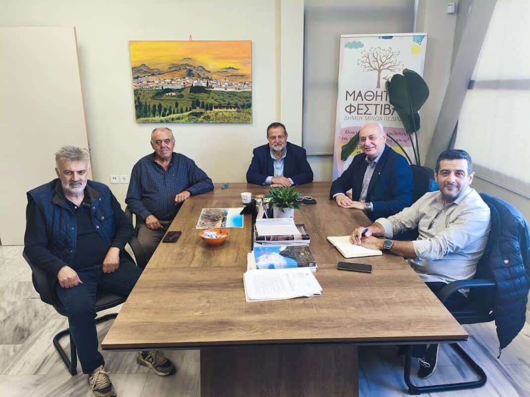 Συνάντηση εργασίας πραγματοποιήθηκε την Πέμπτη 23 Οκτωβρίου, μεταξύ του Δημάρχου Μινώα Πεδιάδας Βασίλη Κεγκέρογλου και του Δημάρχου Βιάννου Παύλου Μπαριτάκη, παρουσία των Αντιδημάρχων Γιάννη Συμιανάκη και Θόδωρου Καρτσάκη, καθώς και του Δημοτικού Συμβούλου Μιχάλη Σαμωνάκη.