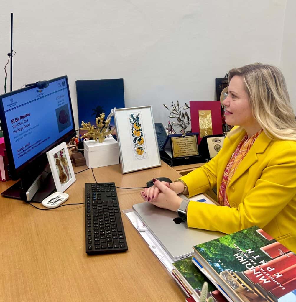 «Η “Elea Heritage Route” γεννήθηκε από το φως και τη γη της Κρήτης, εκεί όπου η ελιά καλλιεργήθηκε για πρώτη φορά στην Ευρώπη», τόνισε η Γεωργία Μηλάκη. «Πρόκειται για μια διαδρομή που συνθέτει πολιτισμό, επιστήμη και περιβάλλον, σύμφωνα με τις αρχές του Συμβουλίου της Ευρώπης και τους στόχους της Πράσινης Συμφωνίας της Ε.Ε.».