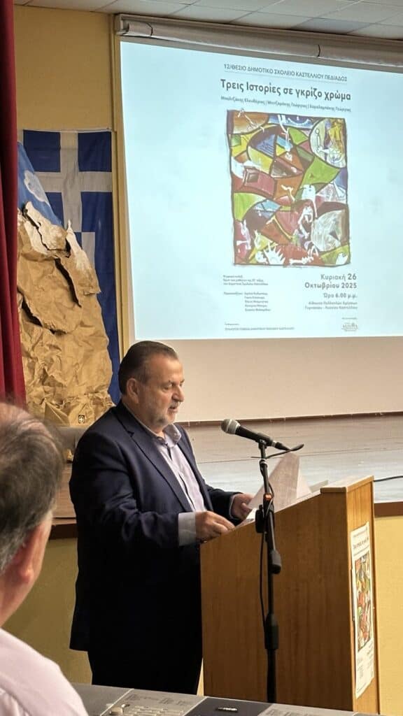 Mία συγκινητική εκδήλωση, πραγματοποιήθηκε την Κυριακή 26 Οκτωβρίου, στην Αίθουσα Πολλαπλών Χρήσεων του Γυμνασίου – Λυκείου Καστελλίου. Η εκδήλωση του Δημοτικού Σχολείου Καστελλίου και του Συλλόγου Γονέων με τίτλο «Τρεις Ιστορίες σε γκρίζο χρώμα», με την υποστήριξη του Δήμου Μινώα Πεδιάδας, αφιερωμένη στην επέτειο της 28ης Οκτωβρίου, τιμώντας τη μνήμη τριών ηρώων της περιοχής – του Μπαλτζάκη Ελευθερίου, του Μπιτζαράκη Γεωργίου και του Χαραλαμπάκη Γεωργίου – οι οποίοι συμμετείχαν στον Ελληνοϊταλικό Πόλεμο, ο καθένας με τη δική του συγκλονιστική ιστορία θυσίας και προσφοράς. Οι δύο πρώτοι έπεσαν μαχόμενοι στις γραμμές της Πέμπτης Μεραρχίας Κρητών, ενώ ο τρίτος επέστρεψε ανάπηρος, παγόπληκτος από τα χιονισμένα βουνά της Αλβανίας.