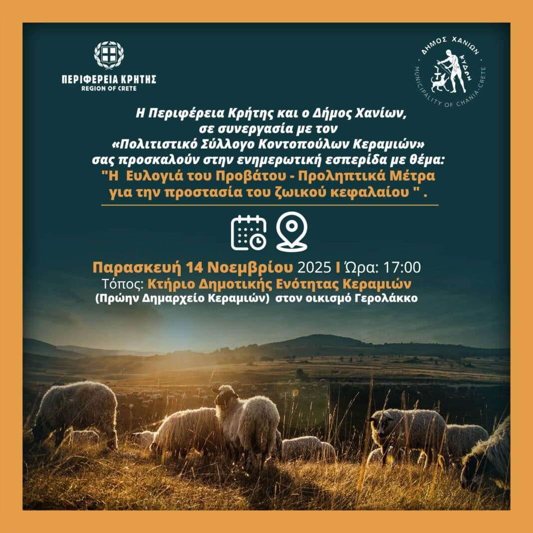 Κατά τη διάρκεια της ενημερωτική εκδήλωσης, η αναπληρώτρια προϊσταμένη της διεύθυνσης Κτηνιατρικής Υπηρεσίας της Περιφέρειας Κρήτης, παρουσίασε αναλυτικά στοιχεία για την επιδημιολογία της ευλογιάς του προβάτου, καθώς και πρακτικές οδηγίες για τη βιοασφάλεια των εκτροφών και την προστασία του ζωικού κεφαλαίου.