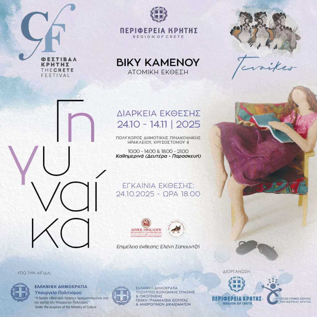Συνδιοργάνωση: Δήμος Ηρακλείου – Δημοτική Πινακοθήκη Ηρακλείου, Περιφέρεια Κρήτης. Διάρκεια έκθεσης: Τρίτη 21 Οκτωβρίου – Τετάρτη 26 Νοεμβρίου 2025 . Ώρες λειτουργίας: Δευτέρα – Παρασκευή 09:00 – 14:00 & 17:00 – 21:00. Σάββατο 09:00 -14:00. Κυριακές και αργίες κλειστά. Είσοδος Ελεύθερη.