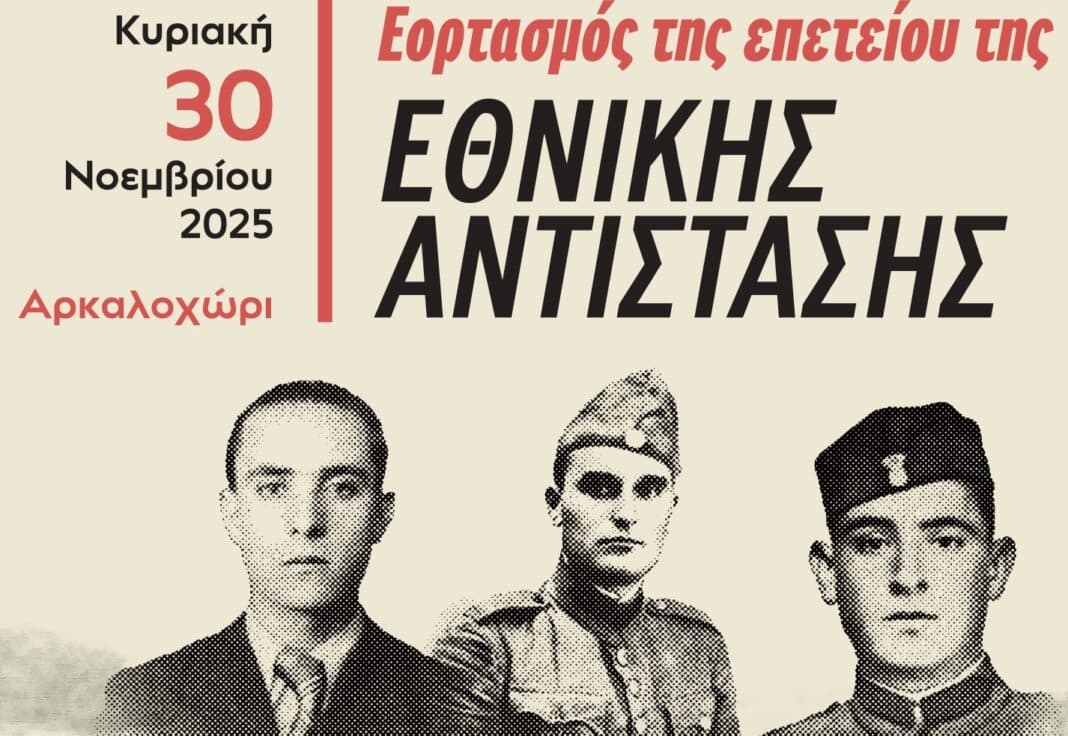 Ο Δήμος Μινώα Πεδιάδας τιμά και φέτος την Εθνική Αντίσταση, διοργανώνοντας εκδήλωση τιμής και μνήμης, την Κυριακή 30 Νοεμβρίου 2025, στο Αρκαλοχώρι.