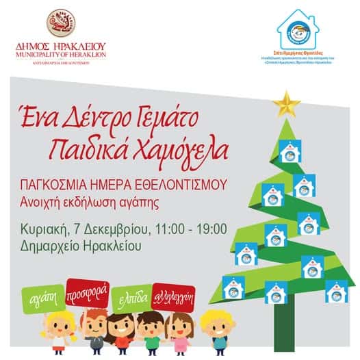 Φορέστε το χαμόγελό σας και στολίστε το δέντρο με «ΧΑΜΟΓΕΛΑ» (κόστος 2€ έκαστο), στηρίζοντας το «Σπίτι Ημερήσιας Φροντίδας» Ηρακλείου για τα παιδιά του οργανισμού.