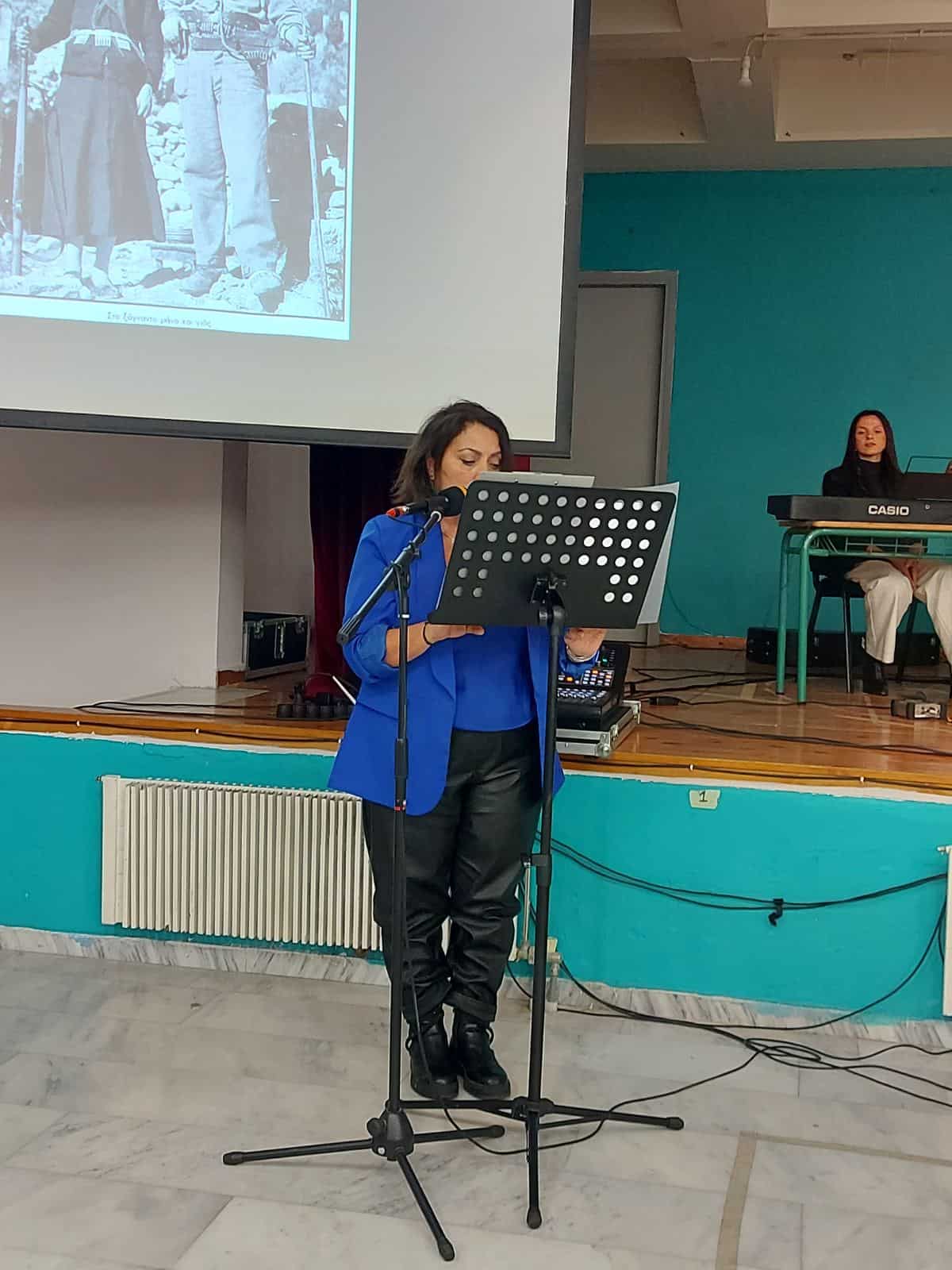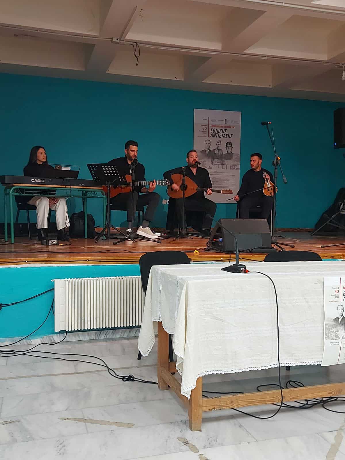 Μετά την επιμνημόσυνη δέηση και την κατάθεση στεφάνων, στα μνημεία των Ηρώων, ακολούθησε μία ξεχωριστή εκδήλωση, στην Αίθουσα Πολλαπλών Χρήσεων του 2ου Δημοτικού Σχολείου Αρκαλοχωρίου, αφιερωμένη στην τοπική ιστορία της Αντίστασης.
