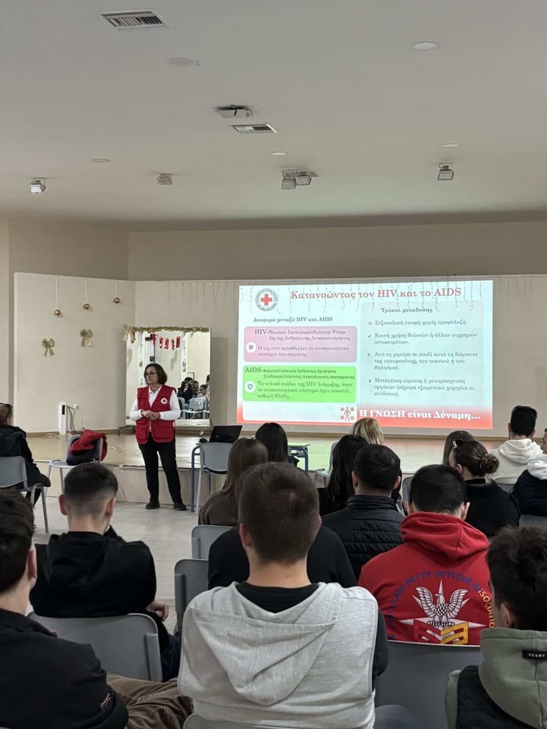 O Ελληνικός Ερυθρός Σταυρός, με αφορμή την Παγκόσμια Ημέρα κατά του HIV/AIDS- 1η Δεκεμβρίου- υλοποίησε μια πολυδιάστατη και στοχευμένη δράση ενημέρωσης, ευαισθητοποίησης και πρόληψης με θέμα «Σεξουαλική Υγεία και Ασφαλής Συμπεριφορά». Η παρέμβαση πραγματοποιήθηκε ταυτόχρονα σε τέσσερις δομές: δύο Σχολεία Δευτεροβάθμιας Εκπαίδευσης, ένα Σχολείο Μεταλυκειακής Εκπαίδευσης και μία Δομή Ασυνόδευτων Ανηλίκων, επιδιώκοντας την άμεση προσέγγιση διαφορετικών ηλικιακών και κοινωνικών ομάδων.