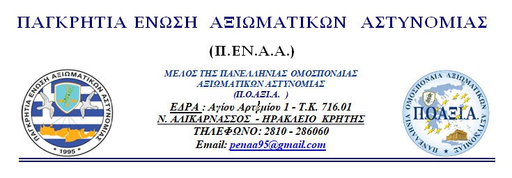 Η Παγκρήτια Ένωση Αξιωματικών Αστυνομίας καταδικάζει με τον πιο κατηγορηματικό τρόπο τα βίαια επεισόδια που σημειώθηκαν σε Χανιά και Ηράκλειο, τα οποία οδήγησαν στον τραυματισμό συναδέλφων μας και στην πρόκληση σοβαρών φθορών σε υπηρεσιακά οχήματα, σε ιδιωτικά οχήματα και δημόσιες υποδομές.