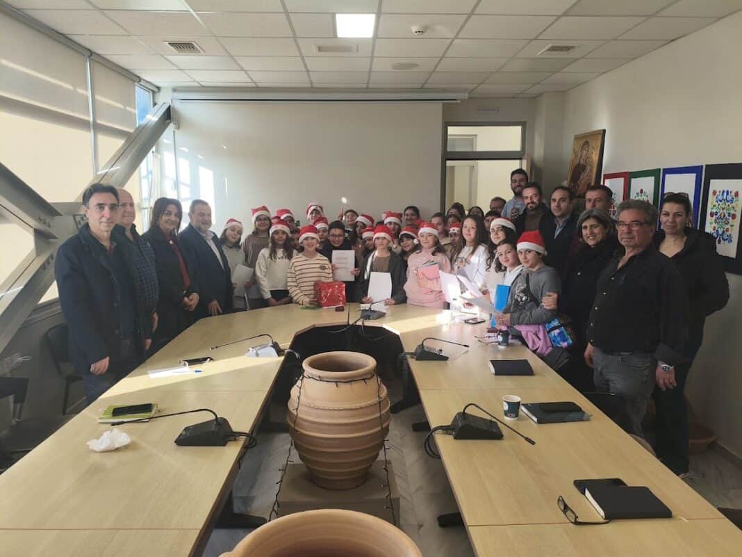 Χριστουγεννιάτικες μελωδίες «πλημμύρισε» το Δημοτικό Κατάστημα Αρκαλοχωρίου, όπου μαθητές έψαλαν τα κάλαντα στον Δήμαρχο Βασίλη Κεγκέρογλου, τους Αντιδημάρχους και το προσωπικό του Δήμου.