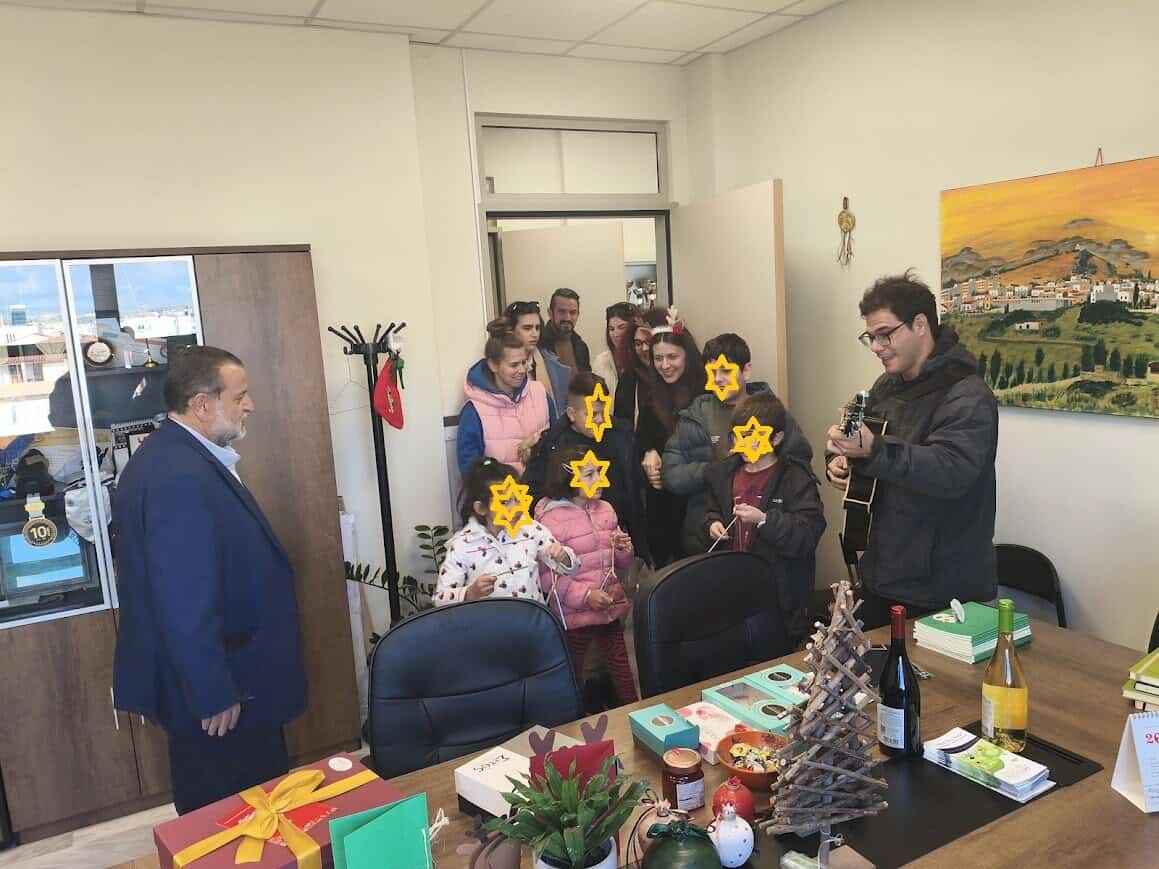 Ο Δήμαρχος, οι Αντιδήμαρχοι, οι εντεταλμένοι δημοτικοί σύμβουλοι και το προσωπικό του Δήμου, υποδέχτηκαν με ιδιαίτερη χαρά τους μαθητές και τους εκπαιδευτικούς που τους συνόδευαν, ανταλλάσσοντας θερμές ευχές για χαρούμενες γιορτές, με υγεία, πρόοδο, δημιουργικότητα και πολλές ευτυχισμένες στιγμές.