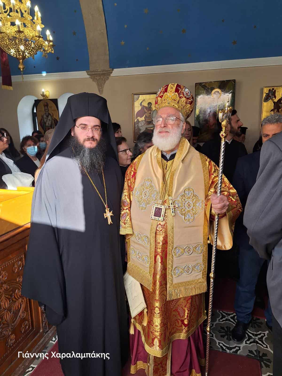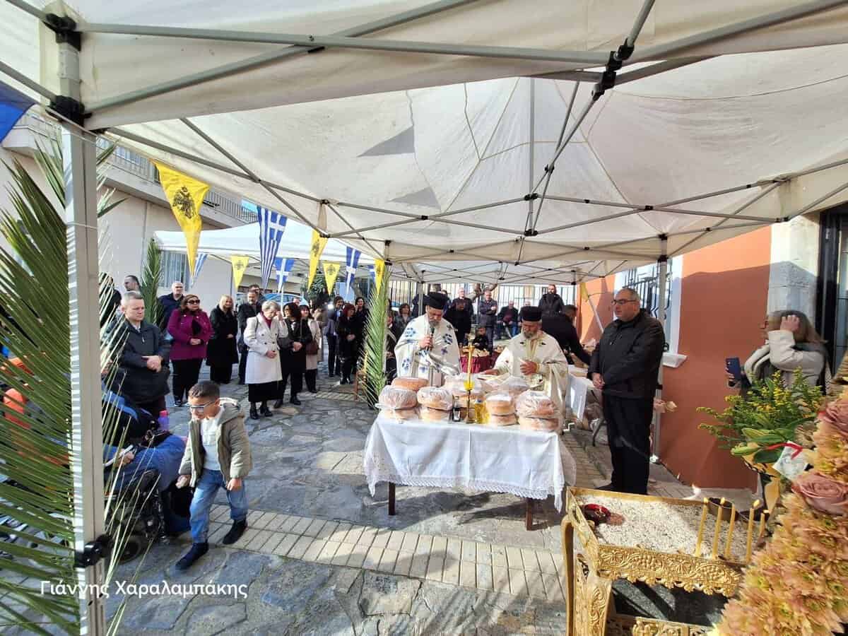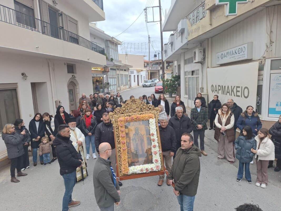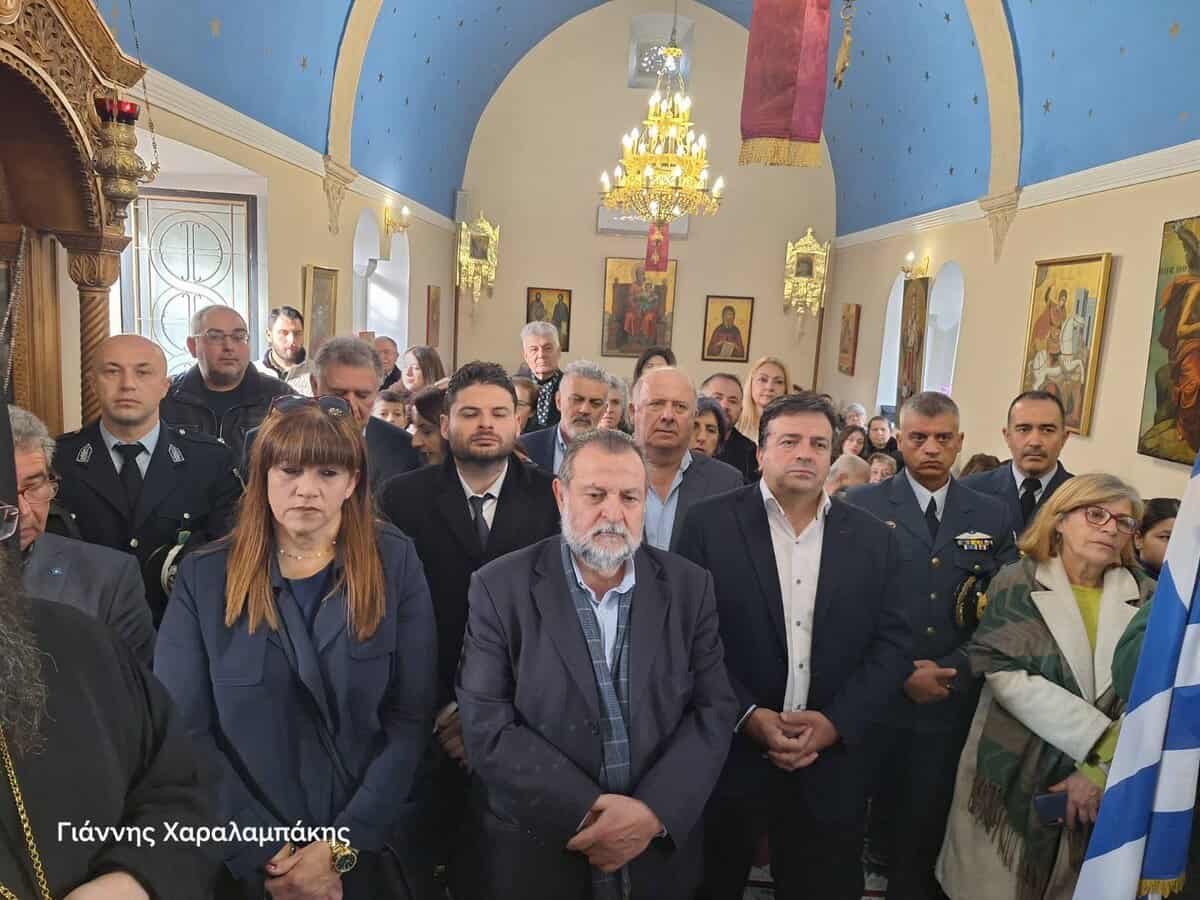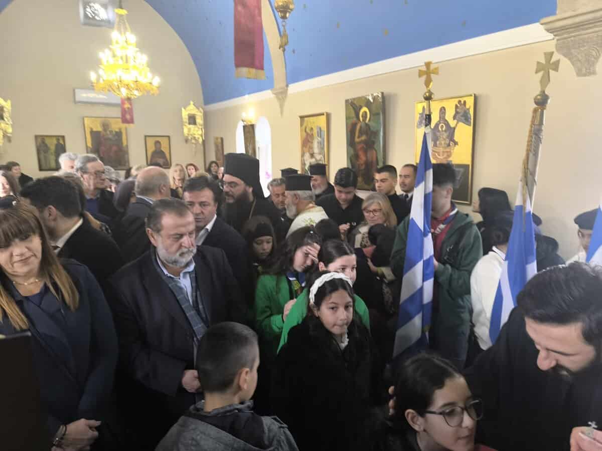 Το πρωί του Σαββάτου 17 Ιανουαρίου, τελέστηκε πανηγυρική Θεία Λειτουργία, ιερουργούντος του Σεβασμιωτάτου Μητροπολίτη Αρκαλοχωρίου, Καστελλίου και Βιάννου κ.κ. Ανδρέα, πλαισιωμένου από τον Προϊστάμενο της Ενορίας Αρχιμανδρίτη Ιερόθεο Χιώτη και κληρικούς της ευρύτερης περιοχής. Παρόντες ήταν μεταξύ άλλων, ο Δήμαρχος Μινώα Πεδιάδας Βασίλης Κεγκέρογλου, ο Αντιπεριφερειάρχης Νίκος Συριγωνάκης, ο Περιφερειακός Σύμβουλος Γιώργος Παπαδάκης, η Πρόεδρος της Δημοτικής Κοινότητας Καστελλίου Μαρία Σκουλούδη, Αντιδήμαρχοι, Δημοτικοί Σύμβουλοι και εκπρόσωποι της Δημοτικής Αρχής, εκπρόσωποι θεσμικών, εκπαιδευτικών, πολιτιστικών και άλλων φορέων του τόπου, εκπρόσωποι της 133 ΣΜ, της Αστυνομίας, της Πυροσβεστικής, οι σημαιοφόροι και παραστάτες των σχολείων του Καστελλίου και του 7ου Συστήματος Αεροπροσκόπων Καστελλίου κ.α.