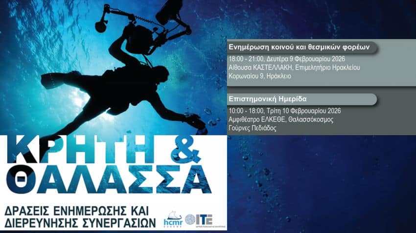 Το Ελληνικό Κέντρο Θαλασσίων Ερευνών (ΕΛΚΕΘΕ) και το Ίδρυμα Τεχνολογίας και Έρευνας (ΙΤΕ) συνδιοργανώνουν διήμερη Εκδήλωση με τίτλο «Κρήτη και Θάλασσα».