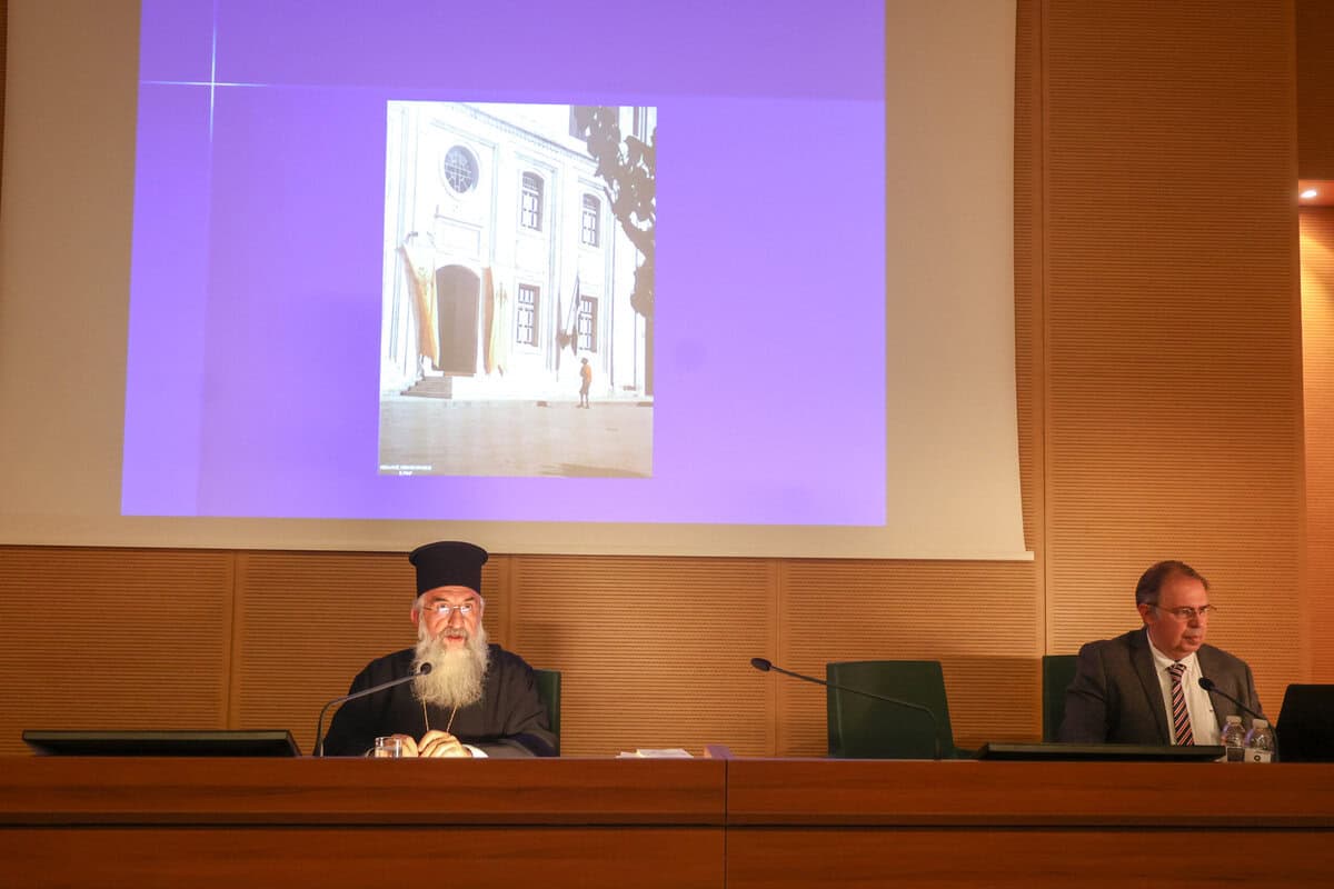Κατάμεστη η αίθουσα της Βικελαίας για την ομιλία του Σεβασμιώτατου με θέμα τα 60 χρόνια από την επανακομιδή της Τιμίας Κάρας του Αποστόλου Τίτου