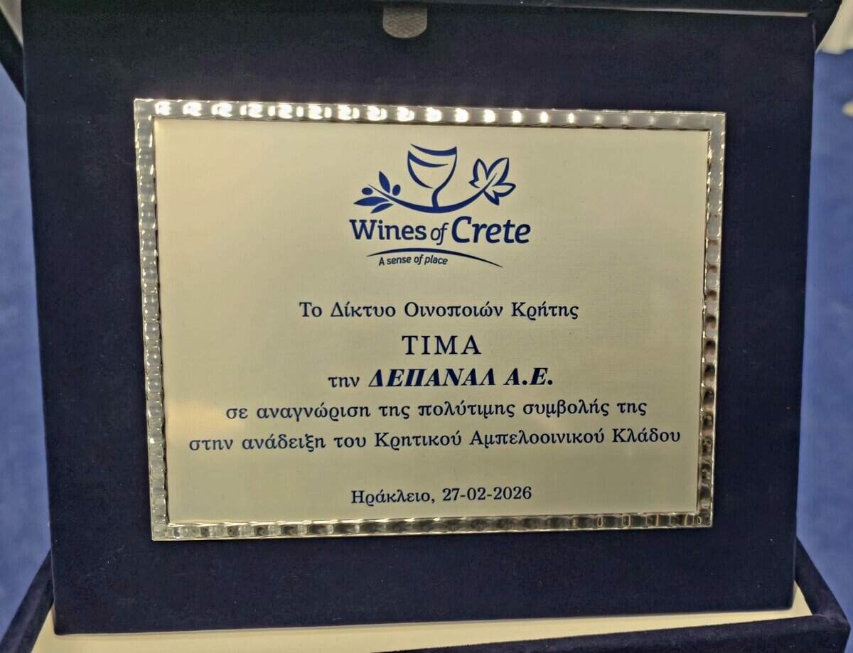 Βραβείο στη ΔΕΠΑΝΑΛ απένειμε το Σωματείο Οινοποιών Wines of Crete για την στρατηγική επιλογή της Δημοτικής Επιχείρησης να προσφέρει στα καταστήματα εστίασης αποκλειστικά κρητικές ετικέτες εμφιαλωμένων κρασιών, στηρίζοντας με αυτό τον τρόπο έμπρακτα τον τοπικό αμπελώνα και την κρητική οινοποιία.