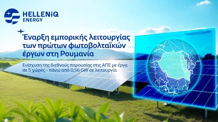Ενισχύεται η διεθνής παρουσία της HELLENiQ ENERGY, στις ΑΠΕ, με έργα σε 5 χώρες και πάνω από 0,56 GW σε λειτουργία. Αυτό επισημαίνεται σε ανακοίνωση της HELLENiQ ENERGY, με την οποία γνωστοποιείται η παραλαβή και η έναρξη εμπορικής λειτουργίας δύο φωτοβολταϊκών πάρκων στη νότια Ρουμανία, συνολικής ισχύος 58 MW, στο πλαίσιο της συμφωνίας που είχε υπογραφεί το 2023 με τη METLEN για την κατασκευή και απόκτηση τεσσάρων έργων συνολικής ισχύος 211 MW.