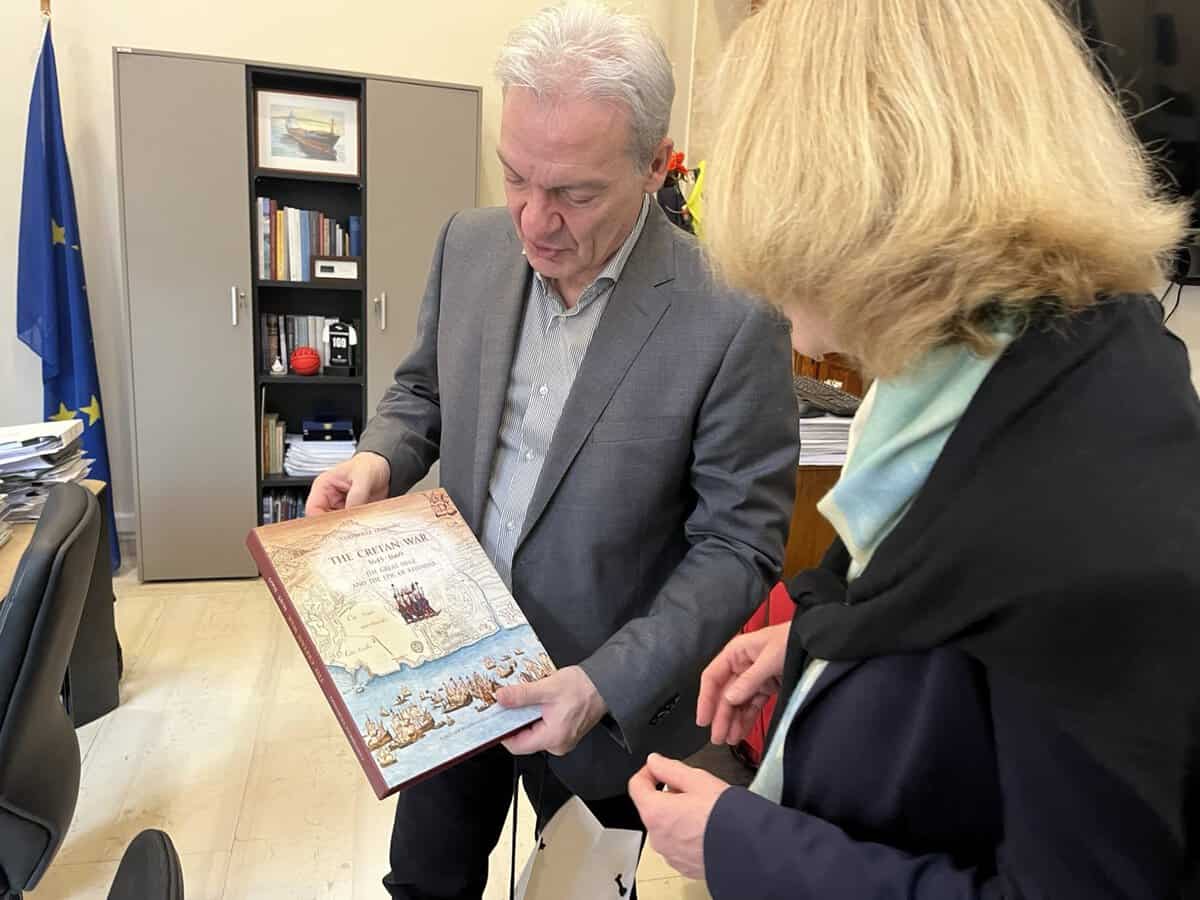 Με την ολοκλήρωση της συνάντησης, ο Δήμαρχος Ηρακλείου δώρισε στην Πρέσβειρα της Αυστρίας τον τόμο «The Cretan War 1645-1669» της Χρυσούλας Τζομπανάκη.
