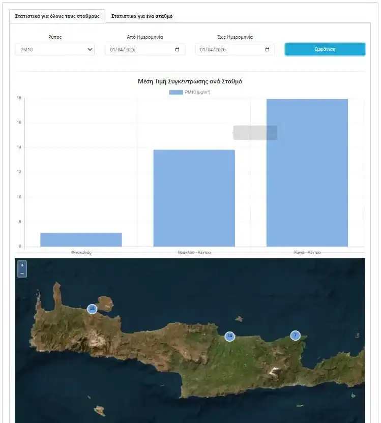 Ειδικότερα, εκτιμάται ότι ο ημερήσιος μέσος όρος συγκέντρωσης αιωρούμενων σωματιδίων (PM10) ενδέχεται να υπερβεί τα 100 μg/m³ κυρίως στην Ανατολική Κρήτη (Περιφερειακές Ενότητες Ηρακλείου και Λασιθίου), ενώ στη Δυτική Κρήτη το φαινόμενο αναμένεται ηπιότερο, με πιθανή υπέρβαση των 75 μg/m³.