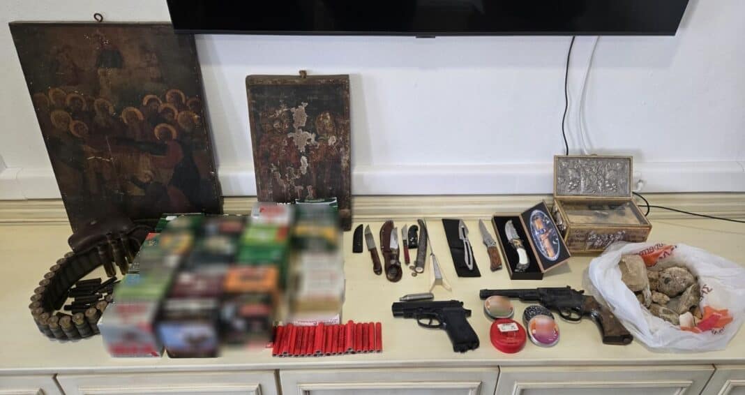 Ειδικότερα, στο πλαίσιο διερεύνησης υπόθεσης ενδοοικογενειακής βίας σε βάρος 52χρονης ημεδαπής από τον 60χρονο, αστυνομικοί των ανωτέρω υπηρεσιών πραγματοποίησαν στις (11.04.2026) το μεσημέρι έρευνες σε σπίτια που κατέχει και χρησιμοποιεί κατά τη διάρκεια των οποίων βρέθηκαν και  κατασχέθηκαν: