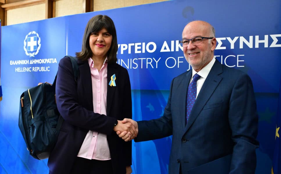 Η επικεφαλής της Ευρωπαϊκής Εισαγγελίας, Λάουρα Κοβέσι, κατά τη χθεσινή συνάντησή της με την ηγεσία του υπουργείου Δικαιοσύνης, εξέφρασε την ικανοποίησή της για την ανταπόκριση της ελληνικής κυβέρνησης και του υπουργού Δικαιοσύνης, Γιώργου Φλωρίδη, στα ζητήματα υποστήριξης της λειτουργίας του Γραφείου της Ευρωπαϊκής Εισαγγελίας στην Ελλάδα, καθώς έγιναν αποδεκτά τα αιτήματα που είχε υποβάλλει κατά την προηγούμενη επίσκεψή της στην Ελλάδα, τον περασμένο Οκτώβριο.