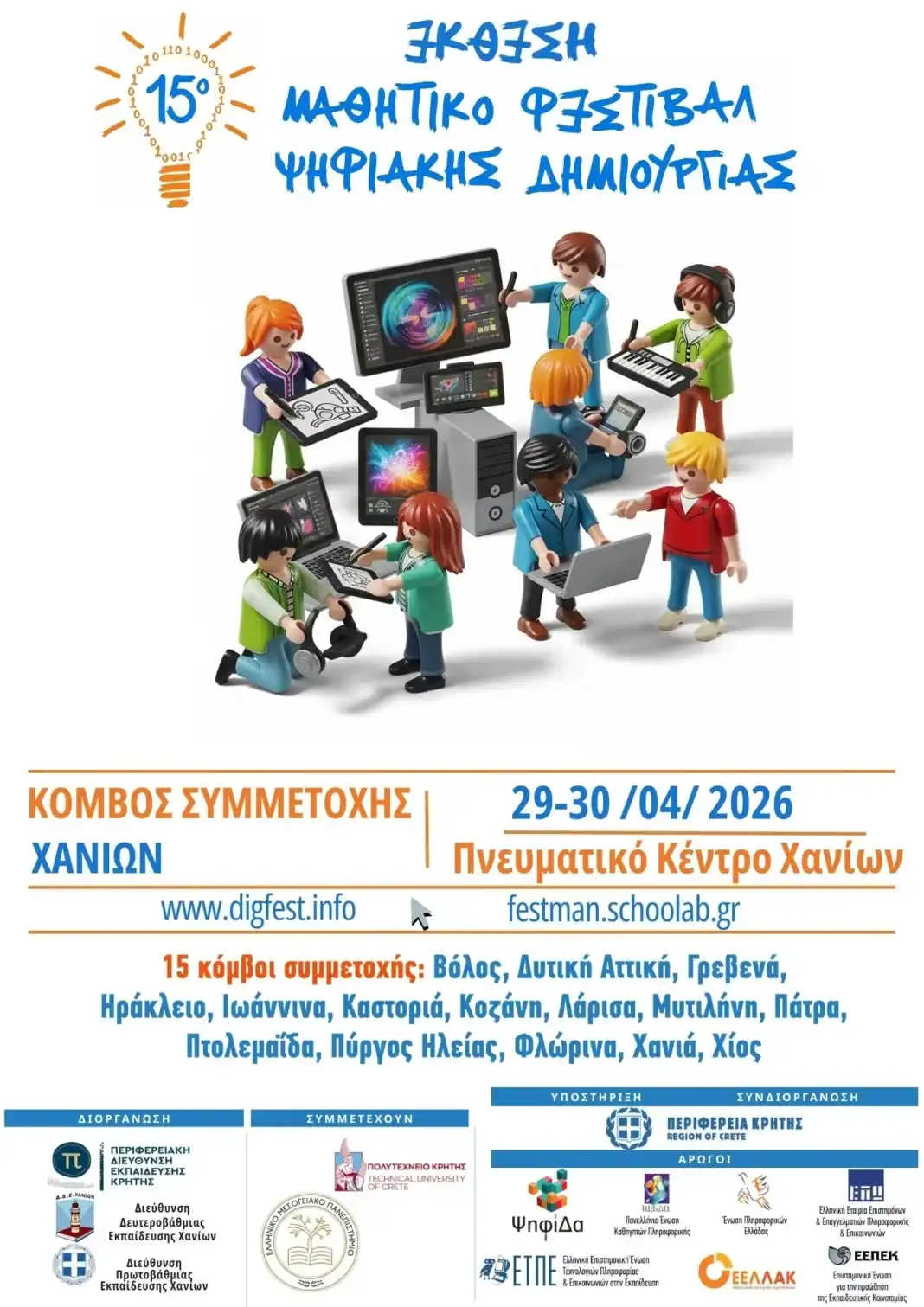 Παράλληλα, το φετινό 15ο Φεστιβάλ Μαθητικής Ψηφιακής Δημιουργίας (www.digifest.info) θα διεξαχθεί πανελλαδικά σε διάφορες πόλεις στην Ελλάδα, το διάστημα 27 έως και 30 Απριλίου 2026.