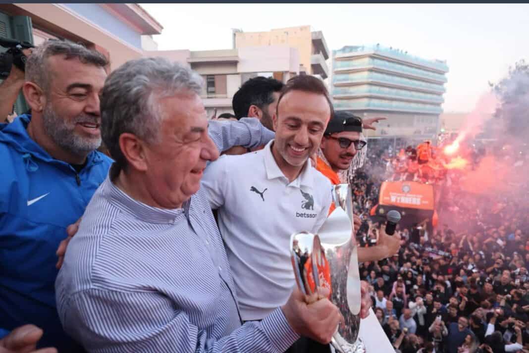 Η άφιξη του ανοιχτού λεωφορείου των νικητών με το σύνθημα“WINNERS” στην Πλατεία Ελευθερίας σήμανε την κορύφωση των πανηγυρισμών. Οι παίκτες της ομάδας, κρατώντας το κύπελλο, έγιναν ένα με τον κόσμο, ενώ από το μπαλκόνι της Περιφέρειας οι διοικούντες και ο Περιφερειάρχης μοιράστηκαν τη χαρά της μεγάλης νίκης, σε μια βραδιά που θα μείνει χαραγμένη στην ιστορία του συλλόγου και της πόλης.